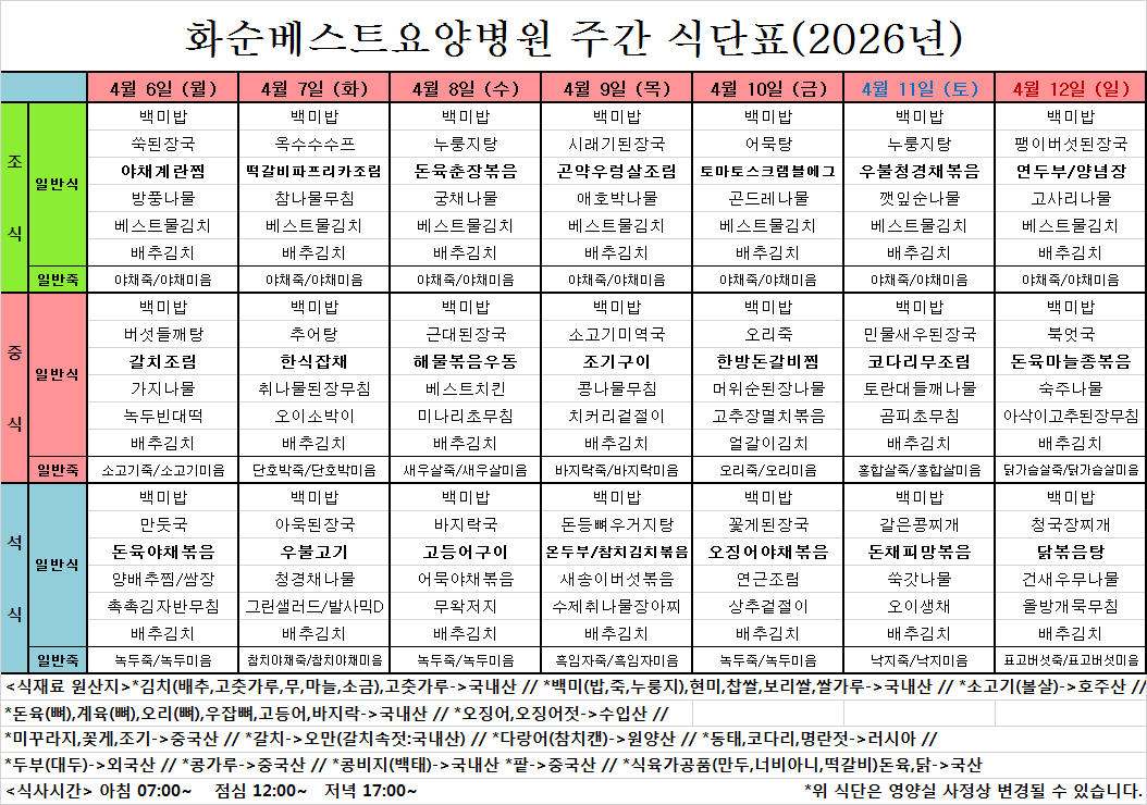 4¿ù 2ÁÖ ½Ä´ÜÇ¥