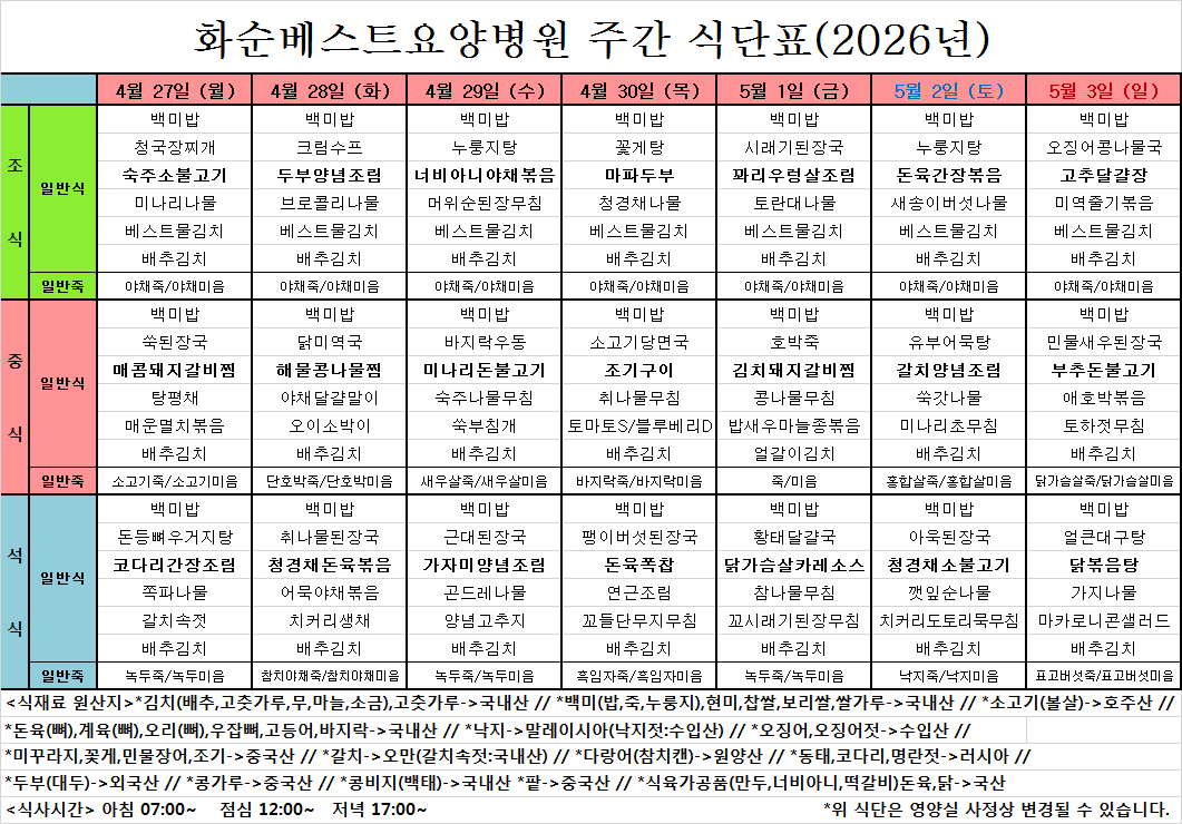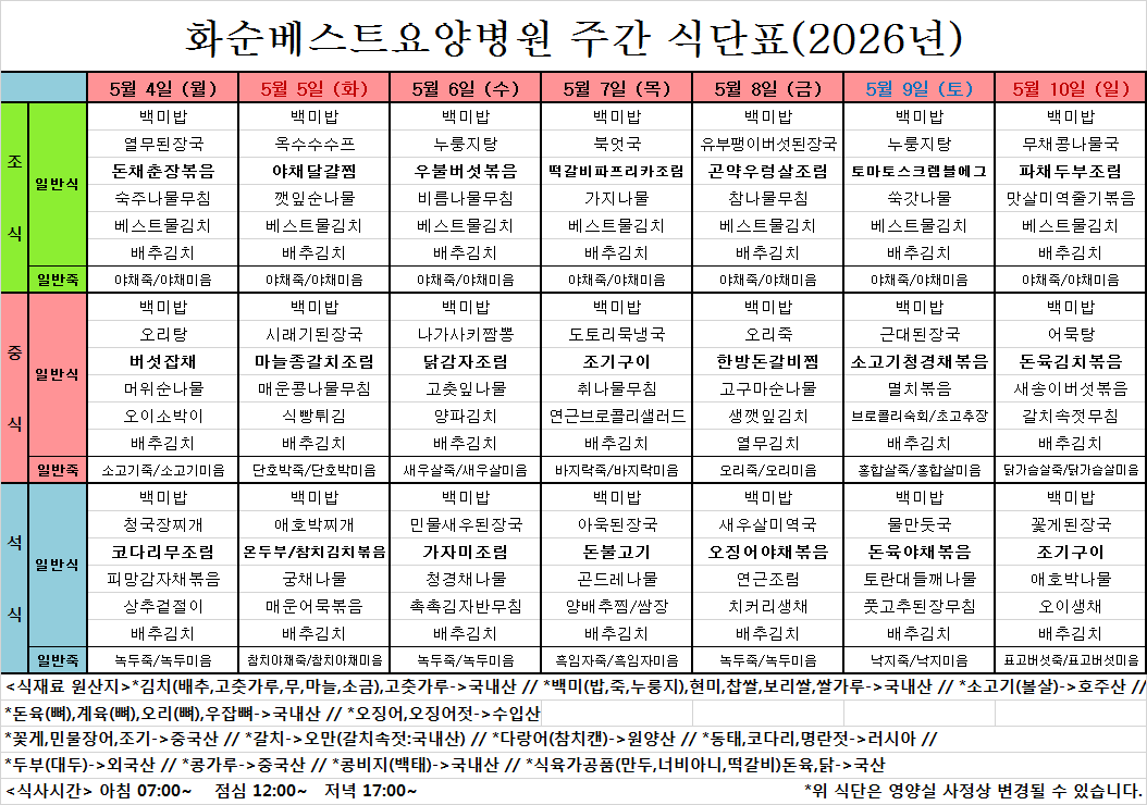5¿ù 1ÁÖ ½Ä´ÜÇ¥